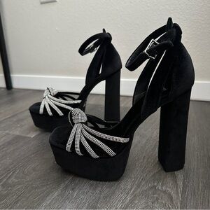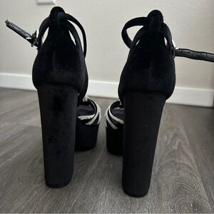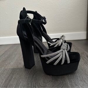 NWOB Gianni Bini Anissa black velvet rhinestone knot platform square toe heels