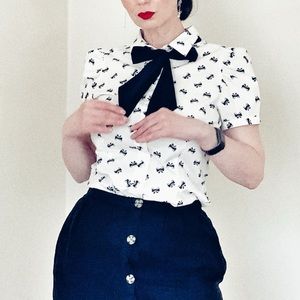 💄Retro Pinup 50s 40s Inspired Puff Sleeve Bow Blouse💋