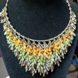 This is a handmade artisan beaded ombre rainbow statement necklace from my personal collection. This has a wrap around stretch neck piece. That will adjust to most sizes. Please ask questions and make an offer. I can't say yes if you don't ask!