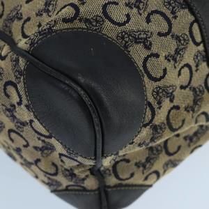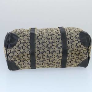 CELINE C Sulky Boston Bag Canvas Leather Navy Gold Auth bs19729