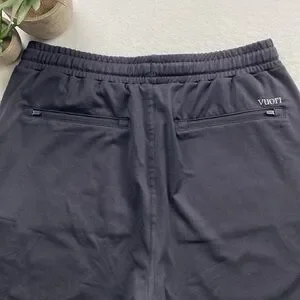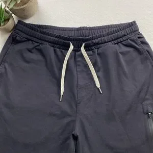 . Size = small (classic/relaxed fit, has 4 way stretch, elastic waist, drawstrings, 2 front slash pockets, 1 front leg zippered pocket, and 2 back zippered pockets)