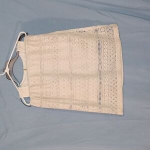 has tank-style cream colored minidress liner n about thigh length