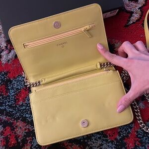 SOLD โ ๐ Unique Chanel Yellow Woven Boy Bag Wallet on Chain Bag ๐