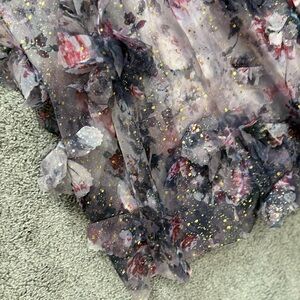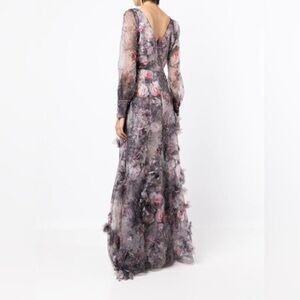 Marchesa Notte NEW Blouson Sleeve Foiled Floral Appliquéd 3D Organza Gown Sz 10. Measurements shown in photos.