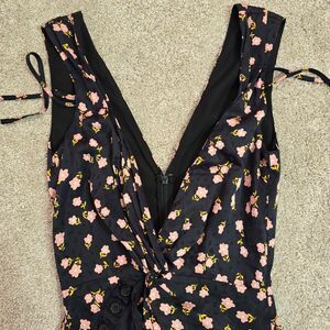 Brand: Self-Portrait Size: 2 Condition: NWT Color: Black with pink flowers This gorgeous dress is flawed . Has stains in a back and seam at the zipper area is stretched. See pictures. Self-Portrait dress Floral Print Ruffle Embellishment Sleeveless with Plunge Neckline Concealed Zip Closure at Back Designer Fit: This designer typically runs small through the bust and waist. If between sizes, recommend taking one size up. Approximate measurements laying flat Length 55" Armpit to armpit 16,5"