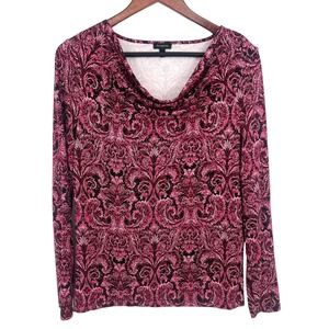 Ali Miles Medium Red Black Long Sleeve Wearable Art Blouse Shirt Top Christmas