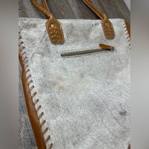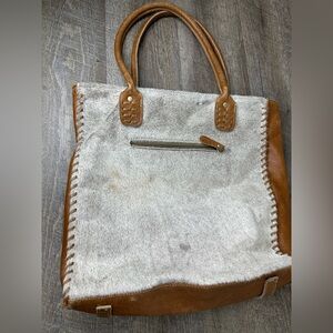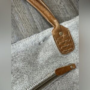 Myra Bag Women's Cloud Gray Brown Accent Calf Hair/Leather Shoulder Tote Bag
