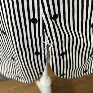 Talbots Black White Women’s Striped Polka Dot Side Zip Round Neck Cotton Blouse