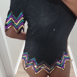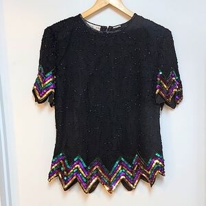 Vintage | SCALA | Mardi Gras Sequin Embellished Top
