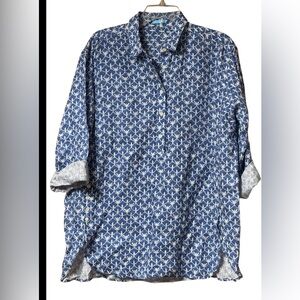 EUC J.Mclaughlin Fallon Long Sleeve Linen SZ L Blue & White