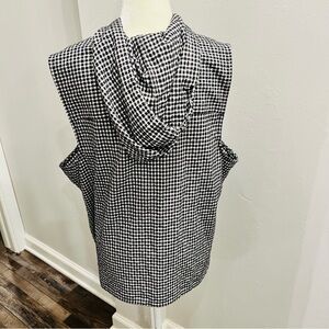 Womens CJ Banks 1X Sleeveless Top Hooded Black White Plaid Button Up