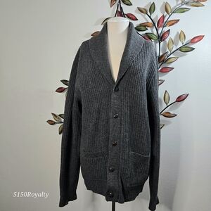 VTG RARE Ralph Lauren Rugby Gray Cardigan Men Size L Shetland Wool Elbow Patches
