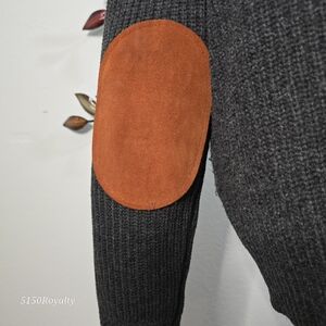 Vintage RARE Ralph Lauren Rugby Gray Cardigan Men Size L 100% Shetland Wool with Leather Elbow Patches