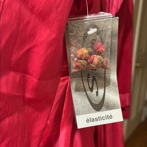 Stylish red trench coat. Features a matching belt. Perfect for any occasion.