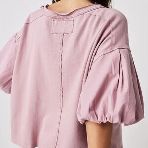 Free People Mauve Puffed Sleeve Blossom Tee.