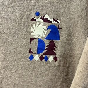 Stylish beige men's shirt with a unique graphic design. Perfect for casual outings. Used condition.. no marks no holes
