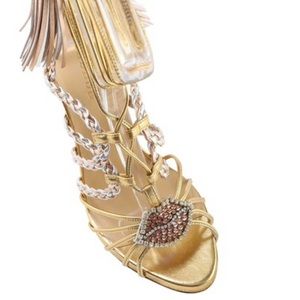 Gedebe Corinne Metallic Napa Leather Tassel Stiletto Laced Sandal - $900 NWT