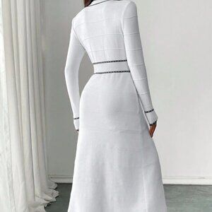 Stay cozy and chic this winter with this Elegant Sweater Dress. This versatile midi-length dress combines comfort and sophistication, making it a must-have for any wardrobe.