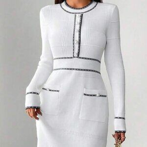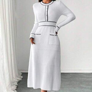 Classic Elegant Waisted Round Neck Sweater Dress