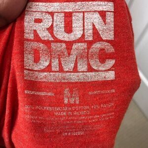 RUN DMC red shirt sleeve tee shirt. Length 26in, sleeve 7in, pit to pit 19in., size medium 🌸🌸🌸