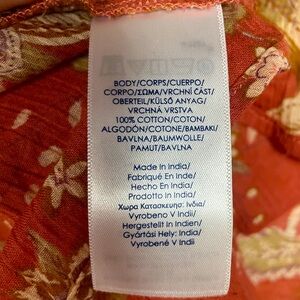 Chaps orange beige floral cotton square neck bell sleeve top, sz 1X