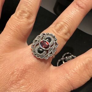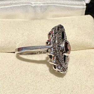 Antique style Marcasite and Garnet 925 FAS sterling silver ring size 7