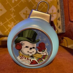 New, lights up… awesome!!!!! Vintage style snowman graphics.