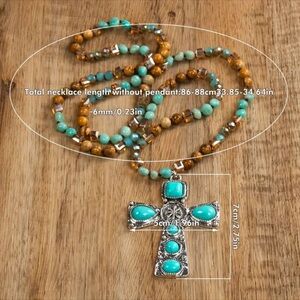 Beautiful Boho Beaded Turquoise & Silver Cross Necklace!