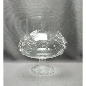 Anthropologie Dolce Candy Jar Footed Clear Hand Blown Art Glass Leaves (No Lid)