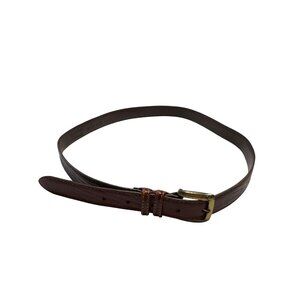 This vintage black metal disc chain belt offers an elegant touch to any ensemble. Its unique design showcases a series of round metal discs. In the first few pictures it appears to be black. It's a dark bronze/ brown.