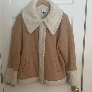 Olive green, great condition, no stains or flaws. Great for walks, running. 2 front zip pockets and one sleeve pocket black piping trim. Has some stretch. 20” pit to pit, length 26.5”