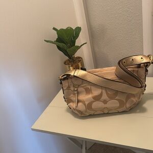 Small authen Coach purse. Cream and gold, leather straps. Gently used