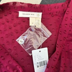 NWT: Anthropologie Meadow Rue Silk and Rayon Burgundy Lined Tie Collar and Butto