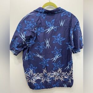 Urban Up (L) men's button down blue x3 hawiiian shirt ! It measures 21 1/2 inches between the shoulders , 27 1/2 inches down the button front and an 11 inch sleeve ! (16)