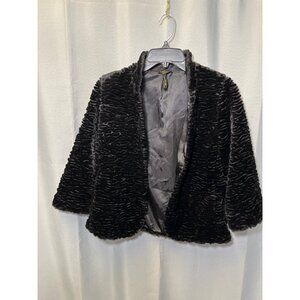 Laundry By Shelli Segal SKU 7582 Faux Fur Black Open Front Cropped Jacket Size