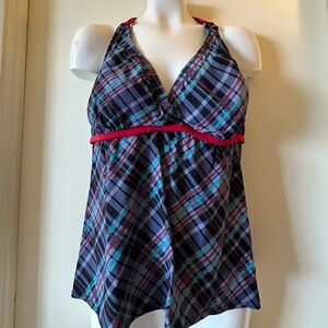 Torrid Vintage Black & Red Plaid Halter Style Bathing / Swim Suit Tankini Top.
