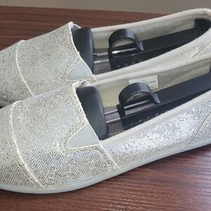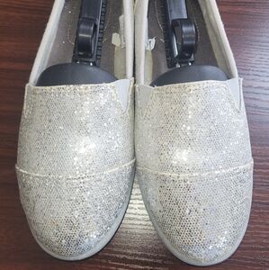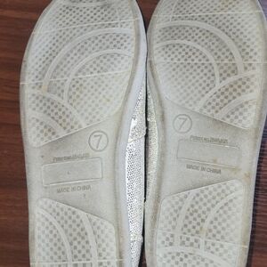 Silver glitter slip on shoes. Faux fur lining. Size 7M.