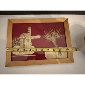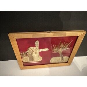 Vintage Polish Straw Art - Windmill & Oasis Silhouettes - 8 X 11 Framed