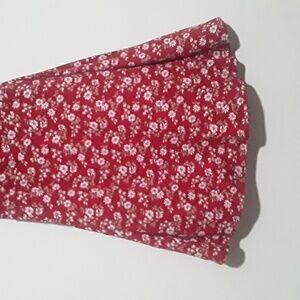 Charming red with white floral pattern.