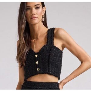 Mid-weight crepe fabric with raw-cut edges and ruffle detail