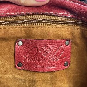Patricia Nash soft and spacious leather bag Used condition. This red leather bag features pretty studded details. Perfect for any occasion. Please review all photos as it does have wear and tear. Please feel free to ask any questions prior to purchasing.