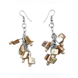 NWT Paua shell/glass seed beaded multi-strand boho 22" necklace, wrap bracelet & earrings in Stainless Steel.