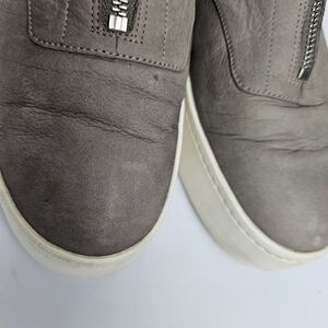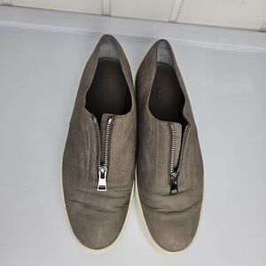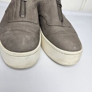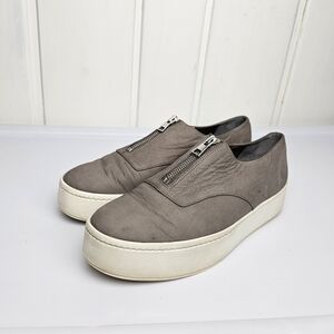 Vince Warner Gray Zip Front Nubuck Leather Platform Slip On Sneakers Women's 9.5