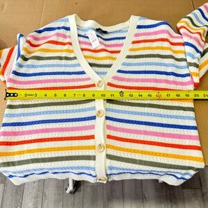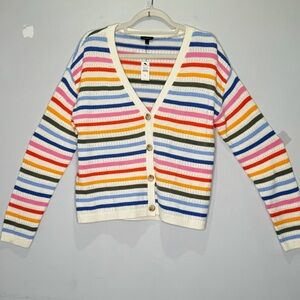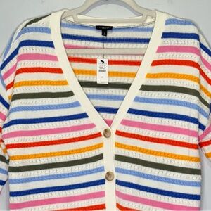 NWT Talbots Ribbed Cotton Knit Oversized Relaxed Cardigan Sweater Multi Stripe M
