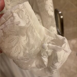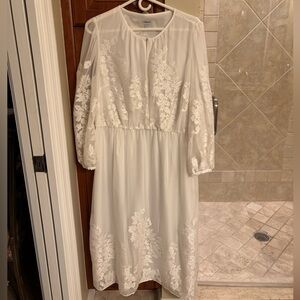 NWOT Beautiful J.Peterman white lace dress with sheer and lace on sleeves and body of dress. Modest style . Size 14 . Nonsmoking household