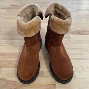 NWT Nico Nerini OC System boots, brown suede with faux fur lining. They are waterproof and also have patented ice grippers that flip out from the bottom. Tool included. The tag says made in Italy, but the bottom of the shoe says made in India, so maybe the shoe was made in Italy and the ice gripper sole was made in India?