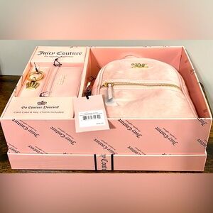 Juicy Couture Pink Diamond Velour Backpack with Cardholder and Keychain