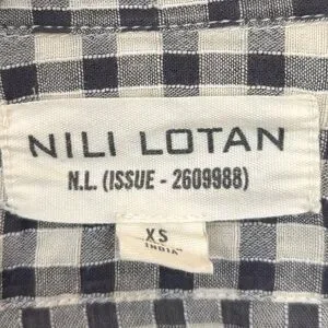 Nili Lotan Gingham Plaid Long Sleeve Button Front Shirt in Blue and Off- White