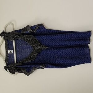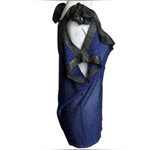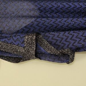 M by Missoni Women's Blue Metallic Ruffle Zig Zag Cold Shoulder Top Size Large