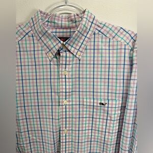 Vineyard Vines Mens Preppy Plaid Button Down Multi Pastel Shirt Size Large
